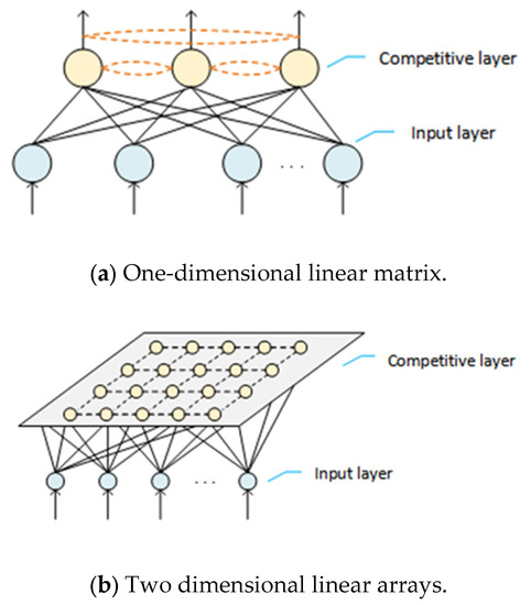 For the input vector , the most matching neuron in the competition layer should be searched for and the winning neuron determined. The matching degree is measured by Euclidean distance. The smaller the distance, the higher the matching degree. The calculation method is shown in (3):