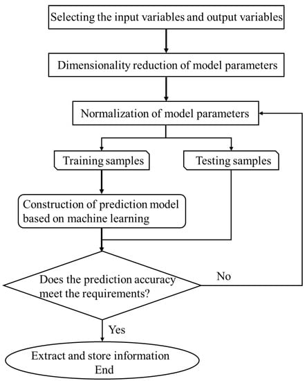 When the inputs and outputs in Equation (2) are selected and preprocessed by the above method, the corresponding prediction model can be constructed with machine-learning technology. Figure 6 shows the implementation process of a prediction model based on machine-learning technology for the settlement of existing buildings surrounding an excavation site, which we have implemented in MATLAB.