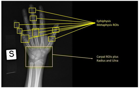 The Tanner and Whitehouse method is a scoring method that derives bone age from the sum of the scores obtained by analyzing various regions of interest in specific bones of the left hand [16]. Unfortunately, this technique also has some limitations: it is a quite complex approach, requiring a significant amount of time and providing a sometimes-ambiguous classification because one bone shape can have two different pre-defined labels of the same feature [17,18].