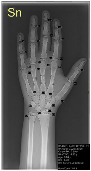- Magon, P.; Viswanathan, V.K. “Bone Age”, Revision Classes in Pediatrics; Jaypee Brothers Medical Publishers (P) Ltd.: New Delhi, India, 2008; p. 54. [Google Scholar] [CrossRef]