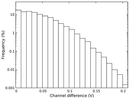 Voltage difference (absolute value) between high and low sampling frequency channels.