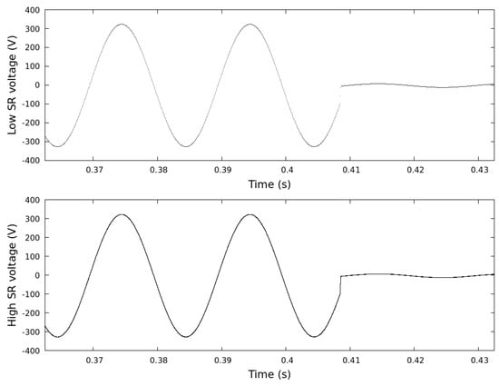 This test covered all triggering conditions to verify triggering, waveform storage and PQ parameter extraction. The acquisition system triggered and recorded the waveform files only in the expected conditions as seen in the third column of Table 3. As an example, an event marked as an interruption can be seen in Figure 7. The signal acquired at 20 kS/s is shown in the top panel, whereas the 4 MS/s signal is in the bottom panel.