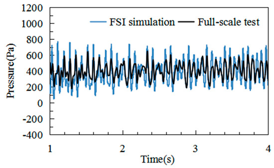 Comparison of pressure and vibration data for the FSI simulation and the full-scale test.