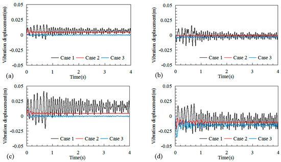 Displacement time-history curve: (a) d1, (b) d2, (c) d3, (d) d4.
