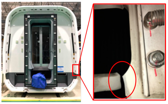 It is known that the airflow around the HST is within a turbulent state when the train runs at high speed, especially at the connection between carriages [7,8,9,10]. The flow separation produces a great quantity of vortices, and the movement and development of the vortices at the end of the carriage leads to the external windshield being subjected to complex and strong aerodynamic load [11,12,13]. Owing to the stiffness and strength of rubber, which is much lower than that of metal materials, under the action of strong pulsating airflow around the connection of HST carriages, large deformation, vibration, and damage of the rubber outer windshield structure frequently occurs [14,15], seriously affecting the train running stability and reducing driving safety.