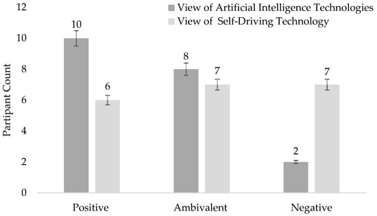Over the last few years, self-driving vehicle research and implementation in society have increased significantly [] and provide an opportunity to examine the ethical implications of artificial intelligence on society and the law enforcement institution []. The results of our study suggest that police officers generally have a more unfavorable view of self-driving technology than other AI technologies. This view of self-driving technology may be attributed to accidents involving self-driving vehicles, the uncertainty regarding traffic enforcement, and the overall judgment of moral acceptability biasing some study participants. Nevertheless, these unfavorable views underscore the requirement to address liability and culpability between human owners of vehicles and manufacturers as the technology becomes more widely available and affordable for the public []. Future research exploring neurocomputational ethics applications such as the agent–deed–consequence (ADC) model of moral judgment developed by Dubljević and colleagues [,], could present a solution for implementing an ethics code into AI, which would improve upon the currently available single-focus approaches and facilitate mitigation of traffic enforcement and criminal justice challenges noted by the study participants. Of note, the ADC model applies virtue ethics, deontology, and consequentialism moral theories to the agent, deed, and consequence components. See Dubljević 2020 for discussion on and application of the ADC model in autonomous vehicles [].