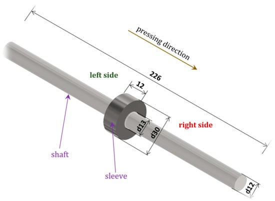 In view of the advantages mentioned above, forced-in joints are used, for example, in motor vehicle power transmission systems [11] and in some aircraft systems [12]. Forced-in joints are also used in rail vehicles. First of all, wheel systems and, within them, the brake disc/wheelset axle assembly and the wheel/wheelset axle assembly [13,14] can be mentioned here. Among the examples of the use of forced-in joints, the joint between the wheel and wheelset axle of the rail vehicle deserves attention. This is the assembly which requires special attention due to its functions in the vehicle. The main task of the wheelset is to run the vehicle on the track, but the set also directly influences the safety [15,16] and comfort of the journey. Any damage not found on time may develop into fatigue wear and cause a railway incident, with vehicle derailing as its natural consequence. Such a situation may also involve high financial losses and cause damage to the passengers’ health. In relation to that, the wheelset is subject to strict manufacturing technology and control at both the manufacturing and operation stages.