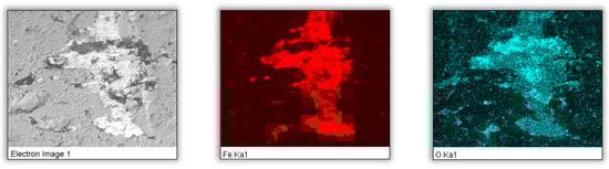 The surface of the shafts at which wear products are located was subjected to the analysis of the chemical composition by means of the EDS technique. The results of this analysis are shown in Figure 15.