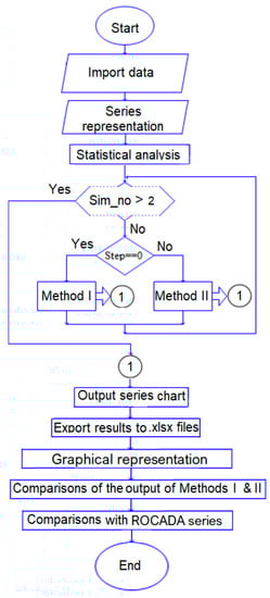 The data series were introduced in an Excel file, each column containing the values registered at a location. The series set does not have missing values. The series whose names and locations are given in Figure 2 are denoted with consecutive numbers assigned alphabetically, from 1—Adamclisi to 10—Tulcea. The National Institute of Meteorology and Hydrology of Romania provided the data.