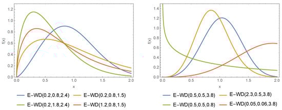 The function in Equation (5) is a non-probability PDF because its integral is not equal to one, so the appropriate method to convert it into a probability density function is to multiply it by the reciprocal of integration. The PDF of the proposed E-WD is:
