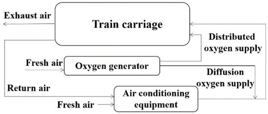 - Hu, T.; Liu, M.; Chang, H. Simulation Research on Oxygen Demand of Passenger Train on Qinghai-Tibet Railway. J. China Railw. Soc. 2011, 33, 21–26. [Google Scholar]