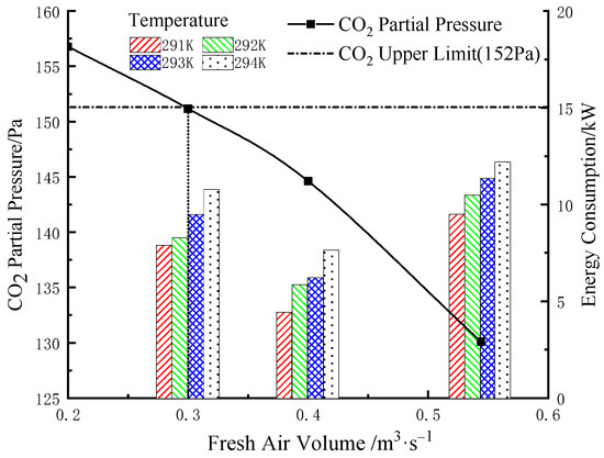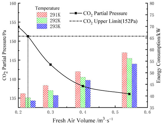 Effect of fresh air volume on partial pressure of CO2 and the energy consumption of ACS (Xining).