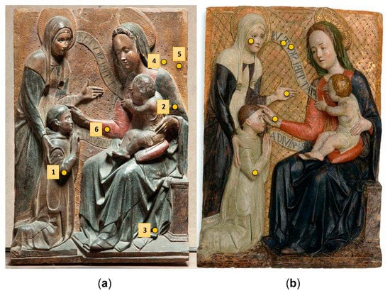 - Mezzabotta, P. Giovanni Antonio Amadeo e La Tecnica Della Terracotta. La Madonna Col Bambino, Santa Caterina Da Siena e un Monaco Certosino, La Versione Del Museo d’Arte Antica del Castello Sforzesco e Quella Proveniente Da Una Collezione Privata. Analisi scientifica e storia collezionistica. Master’s Thesis, Università degli Studi di Milano, Milan, Italy, 2021. [Google Scholar]