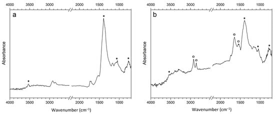 - Chukanov, N.V. Infrared Spectra of Mineral Species, 3rd ed.; Springer: Berlino, Germany, 2014; pp. 14–1726. [Google Scholar] [CrossRef]