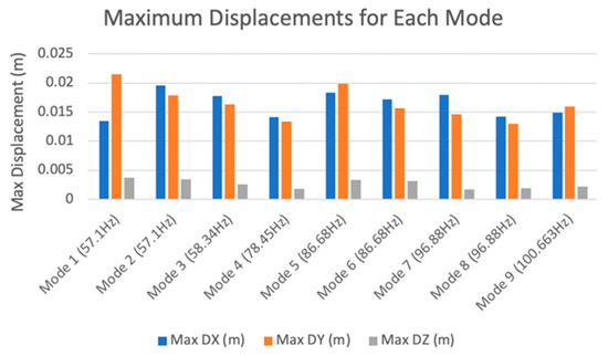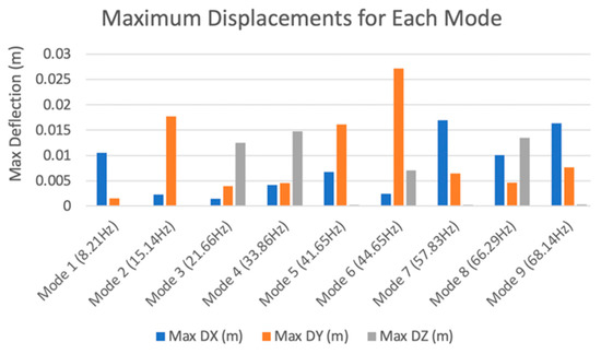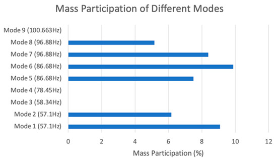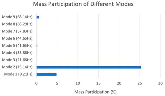 The vibration mode, also called mode shape, is another critical factor in the natural frequency analysis, which is defined as the pattern of vibration the structure follows when excited [46]. Structures can have multiple mode shapes, and each mode shape is associated with a specific natural frequency [47].