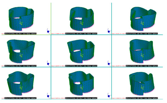 In practice, the natural frequency analysis is used to obtain the natural frequencies and mode shapes, which can be used to find the relative displacement. In addition, the natural frequency can be used to check the frequency range of the structure in different conditions [47]. For example, natural frequency analysis is often used to check the frequency range of the structure against the external frequencies caused by the wind and seismic load. Having a similar structure and external frequency can reinforce the vibration, leading to the inconvenience of the occupants and potential failure of the structure.
