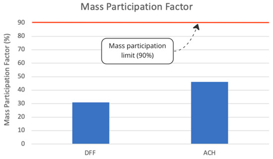 The mass participation factor was compared to EN 1998-1. Based on this standard, the structure is recommended to have a total mass participation of at least 90%. Figure 26 shows the suggested limit against the mass participation factors obtained for DFF and ACH.
