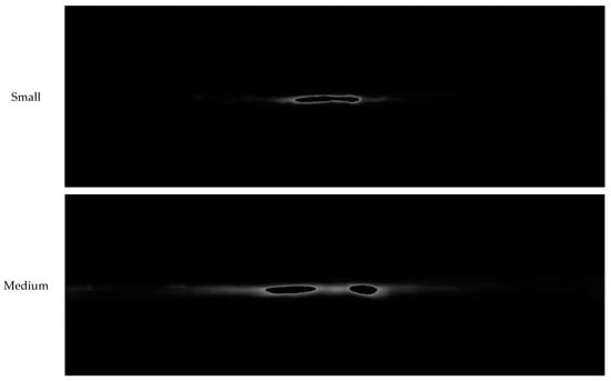 Figure 4 shows the results of accumulating the number of boxes for each pixel position using 39,343 images of training data, assigning the maximum pixel value of 255 (white) containing the largest number of boxes, and assigning the rest of the pixels as a value between 0 and 255 based on that value. For example, each pixel position with a grey value of 255 (i.e., white) in AccumulateImage_S means the most frequent position for small vehicles. By creating AccumulateImage, as shown in Figure 4, the RoI region is configured for the second detector Model B, used for small vehicle detection (see Figure 1 and Algorithm 1). Accordingly, the RoI region is configured on AccumulateImage_S to detect small vehicles, a transformed image is generated, and the transformed image is applied to the second detector Model B (Section 3.2).