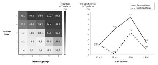 CSs changed most significantly when SRRs changed from #2 to #3. The average CS increased by 0.56, 0.75, 0.71, and 0.09 when the SRR changed from #1 to #5, respectively. Thus, for SRRs #2 to #3, CS increased by the largest margin. From a sentiment point of view, consumers seem to have a jump from the low 3.0 values to the high 4.0 values as the largest increase in perceived value.