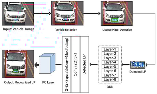 Our developed method has three major modules, which are vehicle detection, license plate detection, and license plate recognition. Figure 2 illustrates the complete flow of our developed method that achieves the aforementioned tasks. The details of each component of the developed method are described below.