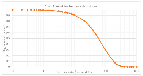 where ()—matric suction; S—degree of saturation; k—fitting parameter; —degree of internal friction [31].