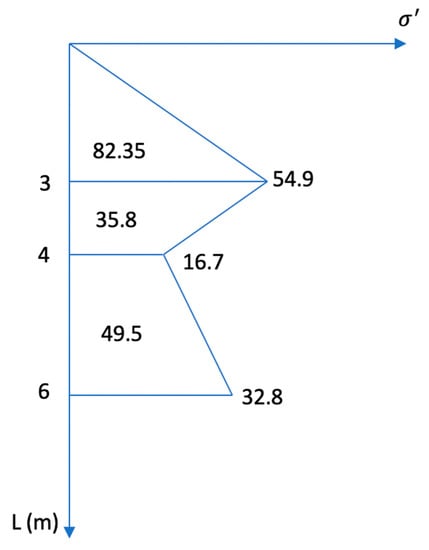 In order to calculate the average value of the vertical effective stress, the area of each section was calculated and then divided by the total depth: