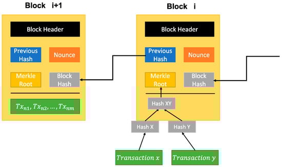 The Ethereum blockchain maintains data blocks and executes smart contracts. Every block can be verified and then added to a chain to create a chain of blocks through consensus protocols, such as proof of work (PoW). Each block consists of a hash (unique value), checked proof of legitimate timestamp operations, and a preceding block hash. The preceding block hash is used to avoid altering the blocks or adding a block between them.