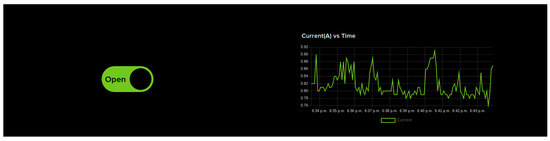 - IoT Dashboard Control: Figure 5 shows the IoT dashboard which can send control signals to NodeMCU via IoT cloud to open and close the wearable device. The dashboard contains OPEN/CLOSE switches used for opening and closing the wearable device when the user is undergoing therapy. This is particularly useful when the therapist is remotely monitoring the user. If the user has any issues in controlling the wearable device and wants some assistance from the therapist, IoT dashboard control can be used. It is a very simple interface and has only two switches which makes it easier for the therapist to use without the need to spend a lengthy amount of time getting trained. Unlike the smartphone-based control, this control mode might see a delay in controlling the device as the command has to reach the NodeMCU via the internet. The live current sensor data is shown as a graph on the right. These sensor feeds are also saved in the cloud for future reference.