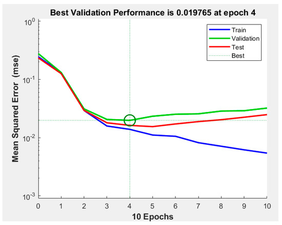 The training function TRAINLM uses the Levenberg–Marquardt (LM) algorithm to find the optimum value. The LM algorithm [52] is a combination of the gradient descent method and the Gauss–Newton method. This neural network algorithm combines the advantages of these two methods and overcomes the problems of slow convergence and easily falling into local minimum points to a certain extent.