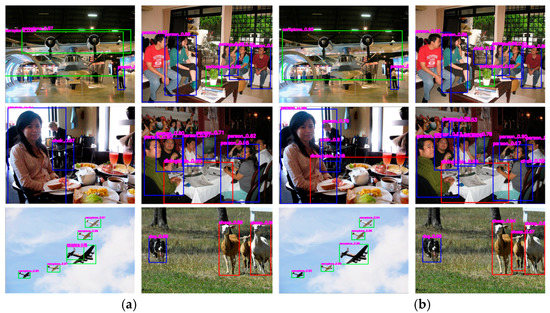We use PASCAL VOC [24] as the training and testing dataset. There are two versions of the PASCAL VOC dataset, including VOC 2007 and VOC 2012. Each dataset has trainval set, val set, and test set. The dataset can be downloaded at Pascal VOC Dataset Mirror (pjreddie.com, accessed on 1 March 2022). In the experiment, we used 300 × 300 images as input images. In addition, we used VOC 07 + 12 trainval as our training dataset and VOC 07 as the test dataset. The ratio of our training and testing sets was about 8:2. At the same time, we also uploaded the result file generated using the VOC2012 test dataset to the competition website (PASCAL VOC Challenge performance evaluation server (ox.ac.uk, accessed on 28 February 2023)) for evaluation.
