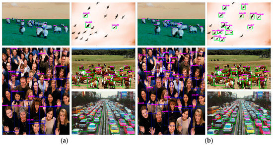 Testing dense target images: (a) on the left is use of the SSD; (b) on the right is use of the ADSSD.