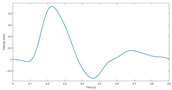 The performance of the angle-optimized graft was compared with that of a non-spiral graft using transient CFD analysis. In setting up the CFD problem, the same mesh and material properties used in the steady-state analysis were used. For the initial boundary condition, a pulsatile blood flow was imposed using a periodic velocity waveform based on magnetic resonance (MRI) readings in the femoral artery of healthy subjects, as seen from the waveform in Figure 4 [31]. Similar to the steady-state simulations, a zero-pressure boundary condition was used for the outlet, and rigid and no-slip conditions were imposed on the walls of the models [24].