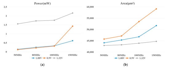Power consumption of DCIM-FF with various supply voltages (a). Area overhead of DCIM-FF with various supply voltage (b).