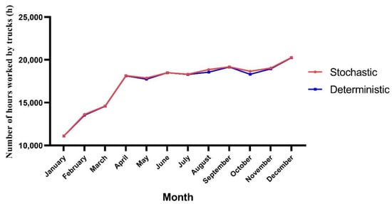 In the simulation for each of the models, there were variations in the truck fleet numbers in certain months. However, these changes did not vary that much at first sight, so several indicators were analyzed to explain these variations between the stochastic and deterministic models.