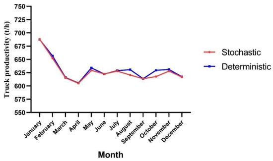 Figure 11. Truck productivity in the stochastic and deterministic models. - -