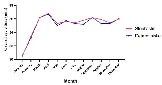 Figure 12. Overall cycle time in the stochastic and deterministic models. - -