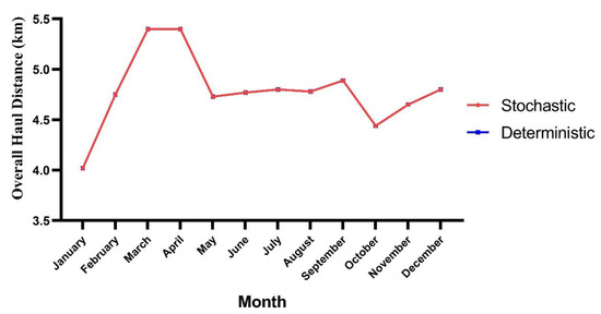 Figure 13. Overall haul distance in the stochastic and deterministic models. - -