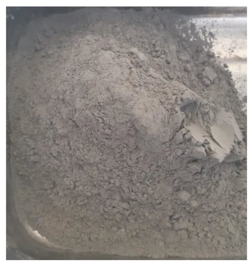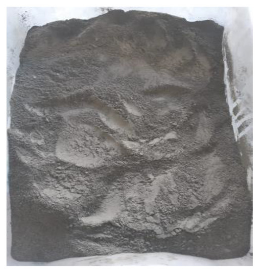 The tailings of this study, as shown in Figure 1, came from the Neves Corvo mine located in the south of Portugal, provided by the Somincor company. After drying in an oven at a temperature of 110 °C, the tailings were broken down manually before testing.
