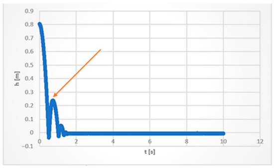 The identification of the bounce heights was required in order to identify the residual positional energy after the hammer bounced off the stretched conveyor belt specimen. The bounce heights were identified using the recorded data, which were then used to produce a curve of a correlation between the impact height and time (Figure 5). A non-dimensional value was used to describe the rebounding process specifically coefficient of restitution e (the ratio of the heights before and after the bounce); the individual values are listed in Table 1.
