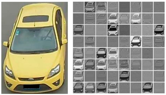 Figure 3 is an example of taking the feature extraction from a single image of a vehicle image. The image structure of the input model is (1, 3, 224, 224), the image size is 224 × 224, and there are three channels: red, green, and blue.