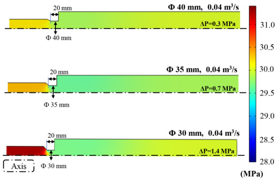 Effect of the ball seat diameter on the pressure distribution; the fluid viscosity was set as 100 mPa·s.