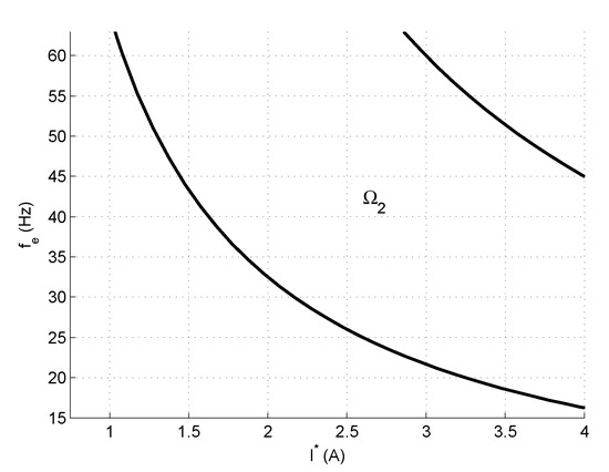 Regarding the partition of the operating space, for the particular case of FSMPSCC, the amplitude for the stator reference and the electrical frequency define the operating point. Depending on the physical characteristics of the system, these variables take values at certain intervals: , . The set of all operating points is included in the Cartesian product .