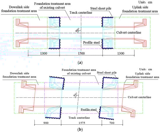 The development of high-speed railways in China has political significance, contributes to the economy, provides social benefits, and reflects cultural values. Due to the joint efforts of railway workers across the country, China has constructed the longest high-speed railway, with the largest construction scale and fastest commercial operation, in the world []. New railway improvements must connect with the existing railway before entering a station, thus forming a roadbed width structure or a culvert extension structure. Structures underneath the rail line also face higher requirements as train operating speeds increase. Thus, determining how to control the deformation of the structure under the rail has emerged as a technical problem in adjacent projects [,].