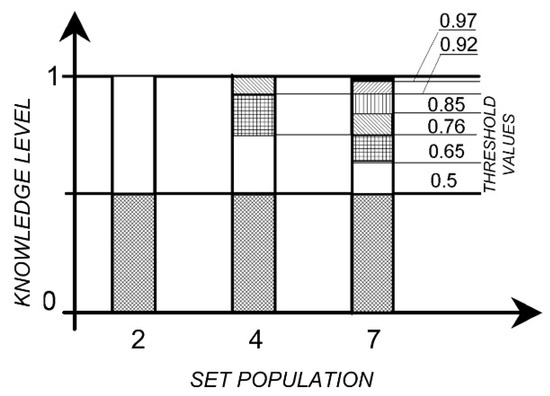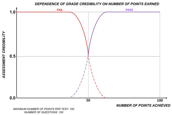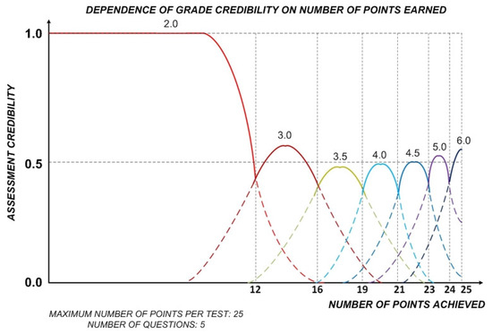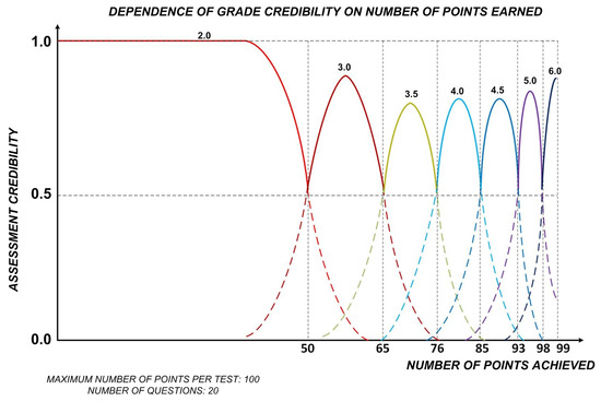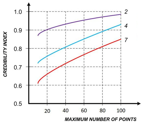 - Increasing the maximum number of points Qmax possible to be awarded to an examined person for provided answers increases knowledge state diagnosis credibility (in accordance with statistical regularities);