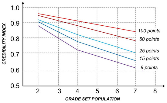 - Increasing the number of grades (i.e., the number of classification intervals) increases knowledge state classification accuracy but reduces grading credibility;