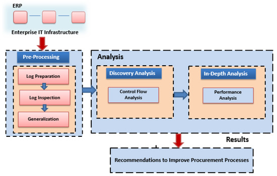 Traditionally, organizations are divided into departments such as production, sales, etc. These departments have their data collection and analysis systems. However, other departments need to know what work is being done, leading to confusion. Modern information systems have emerged to overcome these problems. Most companies and organizations store their data in information systems (IS), such as executive information systems and enterprise resource planning (ERP) systems. ERP systems are growing in popularity because they view the entire organization as one system and its departments as sub-systems [1]. These systems overcome the traditional problems as all the organization’s information is stored centrally and available to every department, bringing many benefits to the organization, such as process integration, data transparency, automation to increase productivity, etc. ERP is a business process management software that helps companies integrate internal and external management information, such as finances, procurement, and customer relationship management. Many systems store all relevant events in a structured form, usually as logs, also known as audit trails or event logs [2,3].