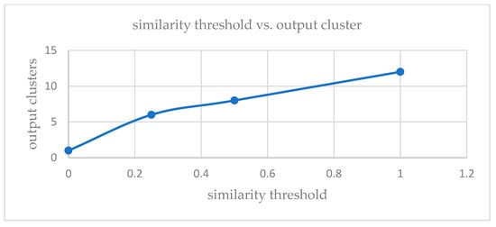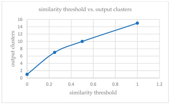 Similarity threshold vs. output clusters using KDDCUP’99.