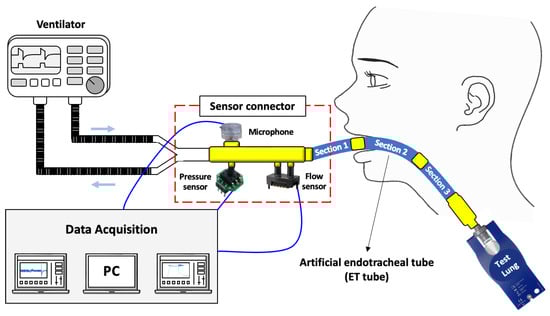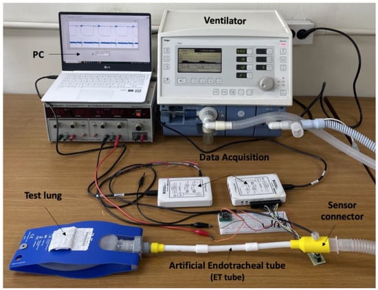 Figure 5 shows the experimental environment for measuring respiratory signals. Except for the sensor connector and artificial ET tube, all components were medical devices used in hospitals.