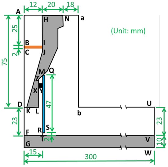 A nitrogen DC pulse APPJ with a quartz tube design was simulated using COMSOL Multiphysics 5.3a, in which finite element methods were applied, as illustrated in Figure 1, where ADLN is the nozzle of the plasma source, MRSQ is the quartz tube, and FGWV is the working plate. The inlet gas comes from AH, meets the electron and heat sources at BCJI, and spouts out from the nozzle DK. Then, the plasma gas meets the working plate (FV), at which the treated substrate is usually placed, passes the gap (RT) under the quartz tube, and finally flows to the outside air (NabUV). The details of other materials and applied calculations are shown in Table 1.