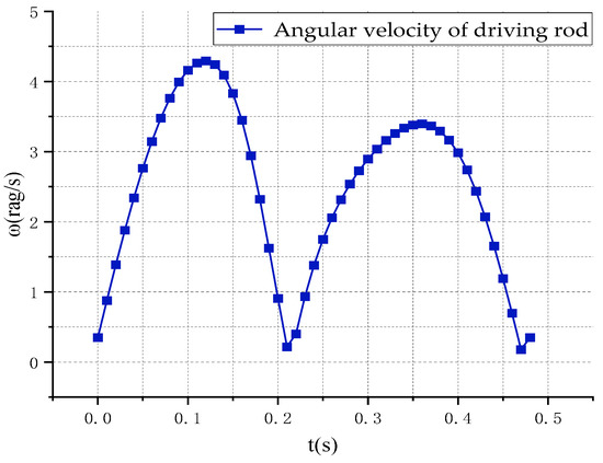 Here take r/min. The angular velocity change information of the drive rod can be calculated from the Formula (3) (Figure 4):